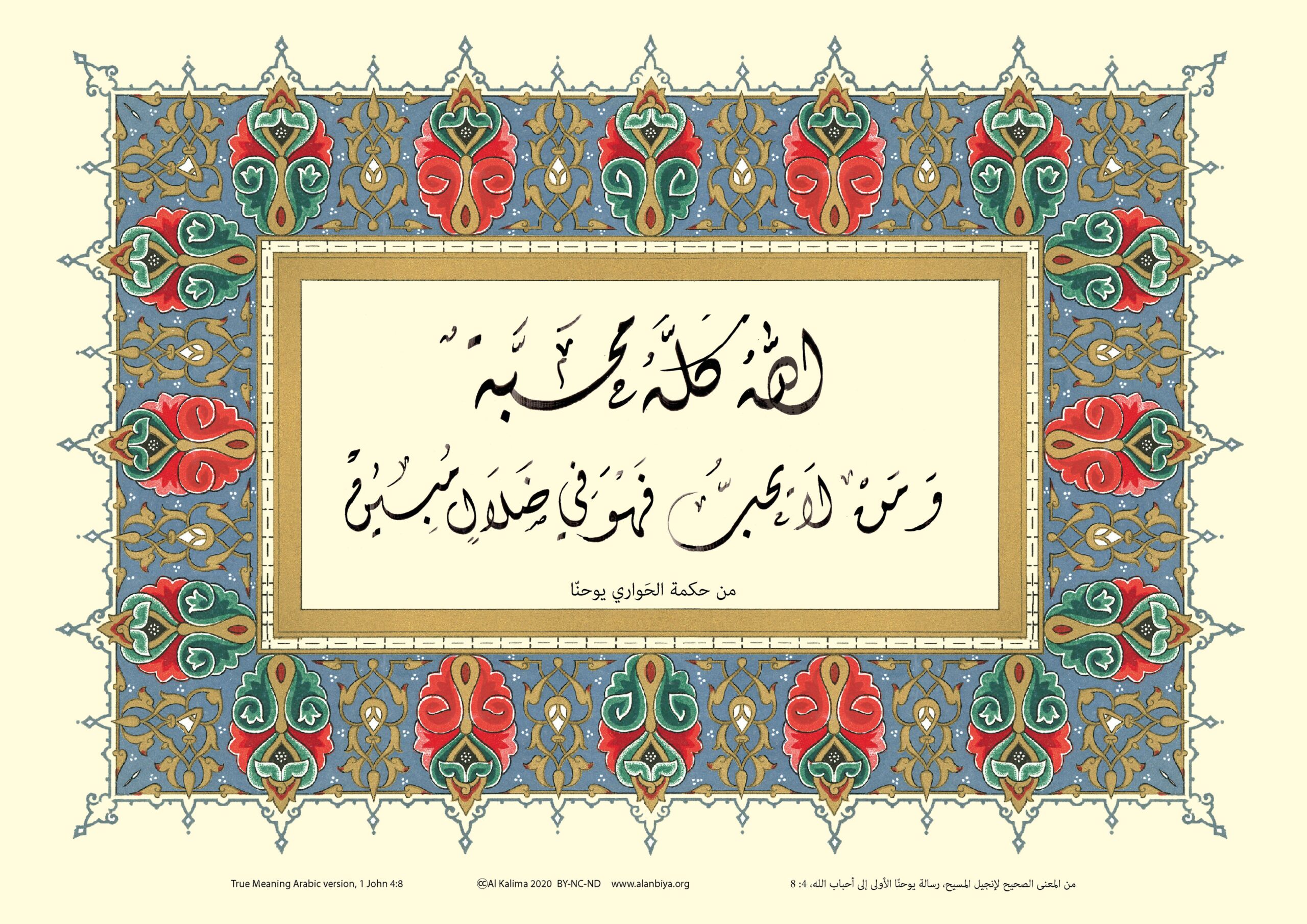 Elegant calligraphy, giving the meaning: God is Love, and whoever does not love does not know God, because God is love.